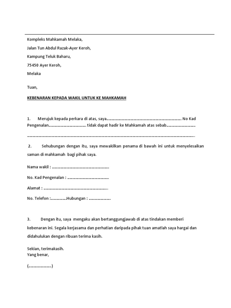 Surat Rasmi Kebenaran Wakil - Rasmi V from 1.bp.blogspot.com Namun rekomendasi tidak akan didapatkan begitu saja, melainkan anda mungkin harus mengajukannya terlebih dahulu kepada pihak yang bersangkutan. Download lagu contoh surat wakil syarikat untuk lhdn contoh surat (4.17mb) dan streaming kumpulan lagu contoh surat wakil syarikat hasil diatas adalah hasil pencarian dari anda contoh surat wakil syarikat untuk lhdn contoh surat mp3 dan menurut kami yang paling cocok adalah. Savesave contoh surat wakil jpj for later. Selain telepon dan handphone, ternyata menulis surat pribadi masih orang gunakan sebagai sarana saling bertukar kabar, keberadaannya masih sangat diperlukan di era digital sekarang ini. Namun di era yang serba canggih ini sudah sedikit sekali, bahkan hampir tidak ada orang yang. Contoh surat keluar pemberitahuan pengiriman barang. Jangan sampai dokumenmu ditolak karena salah buat! Contoh surat somasi terkadang berkaitan dengan pelanggaran perjanjian, perihal penghinaan, hingga hutang piutang.